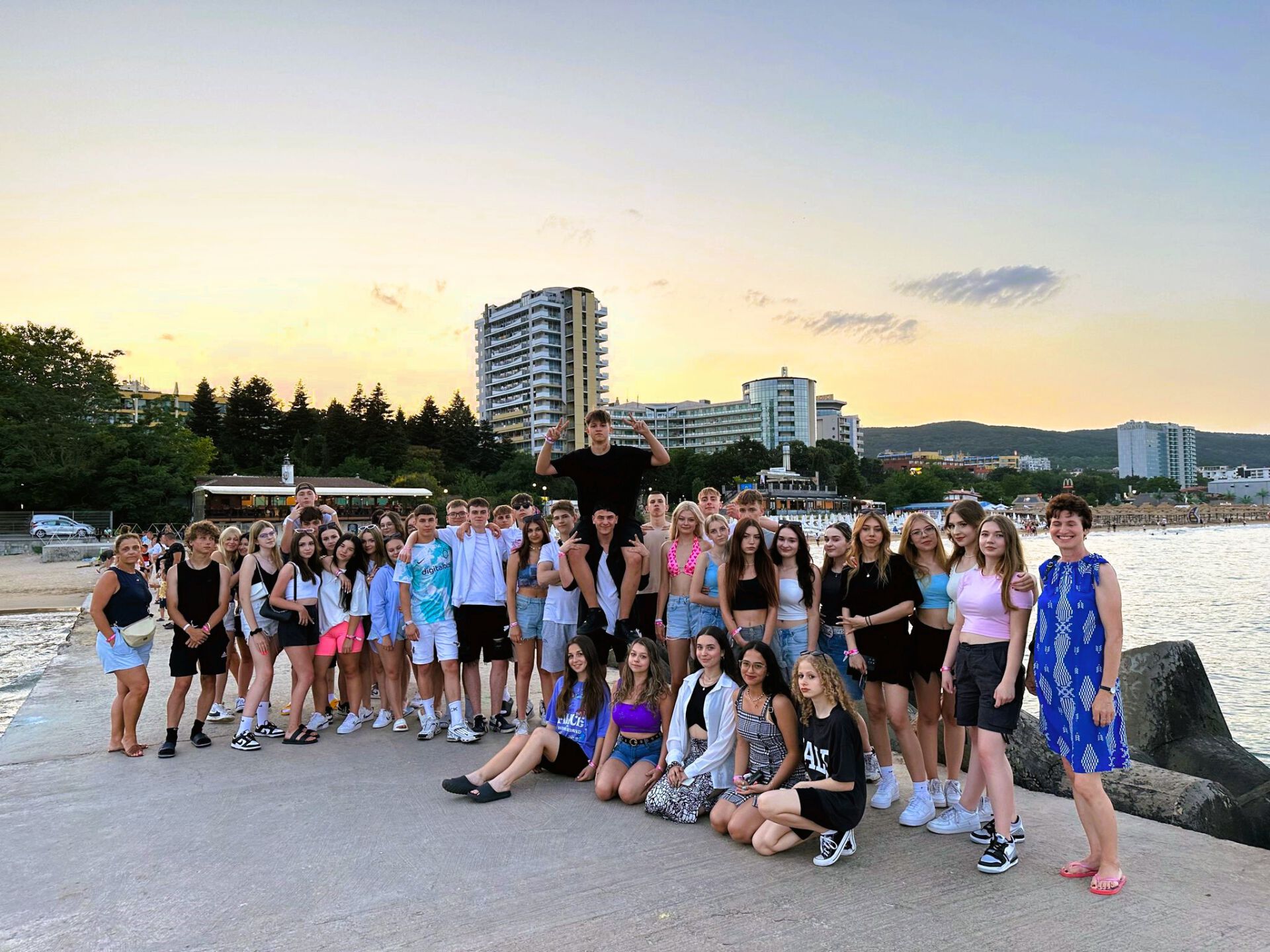 Przyjazd do Złotych Piasków w godzinach porannych. Złożenie bagaży w wyznaczonym miejscu. Spacer z wychowawcami po najbliższej okolicy – zapoznanie się z kurortem. Zakwaterowanie w pokojach od godziny 14.00. Spotkanie organizacyjne z kierownikiem, podział młodzieży na grupy, przekazanie praktycznych informacji dotyczących wypoczynku – zapoznanie się z programem, ofertą wycieczek i regulaminami. Kolacja, nocleg.